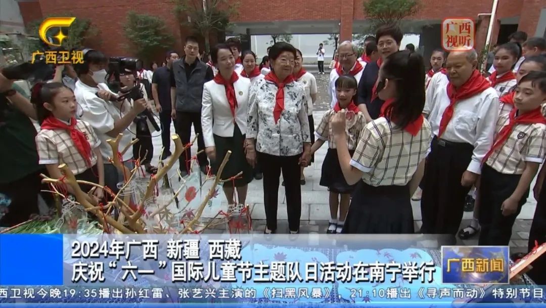 2024-05-24中国关工委主任顾秀莲出席2024年广西、新疆、西藏庆祝“六一”国际儿童节主题队日活动5月22日,由共青团广西区委、自治区教育厅、自治区关工委、自治区民宗委、广西少工委、广西青少年发展基金会主办的“画好最大同心圆 争做新时代好队员”——2024年广西、新疆、西藏庆祝“六一”国际儿童节主题队日活动在南宁市民主路小学举行,中国关心下一代工作委员会主任顾秀莲出席。