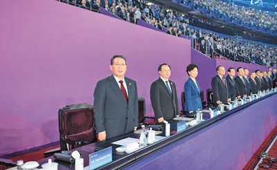 2023-10-09第十九届亚洲运动会在杭州圆满闭幕10月8日晚,第十九届亚洲运动会在杭州圆满闭幕。国务院总理李强出席闭幕式。 -