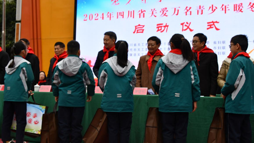 2023-12-25四川省关工委等部门联合主办的“老少牵手·温暖童心”2024年关爱万名青少年暖冬行动启动12月19日,四川省关工委、省委老干部局、省总工会、团省委、省妇联、省关心下一代基金会联合主办的“老少牵手·温暖童心”2024年四川省关爱万名青少年暖冬行动启动仪式在南充市仪陇县朱德红军小学总校举行。省关工委常务副主任陈官权出席并宣布活动正式启动,省关工委副主任唐建军出席并讲话,省关工委副主任杜小炎、刘华军,省总工会二级巡视员杨波出席,南充市委常委、组织部部长、市关工委主任王双全主持,仪陇县委书记郭宗海致辞。 -